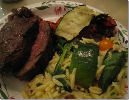 This lamb was served with an orzo salad that had lots of delicious veggies and feta cheese.